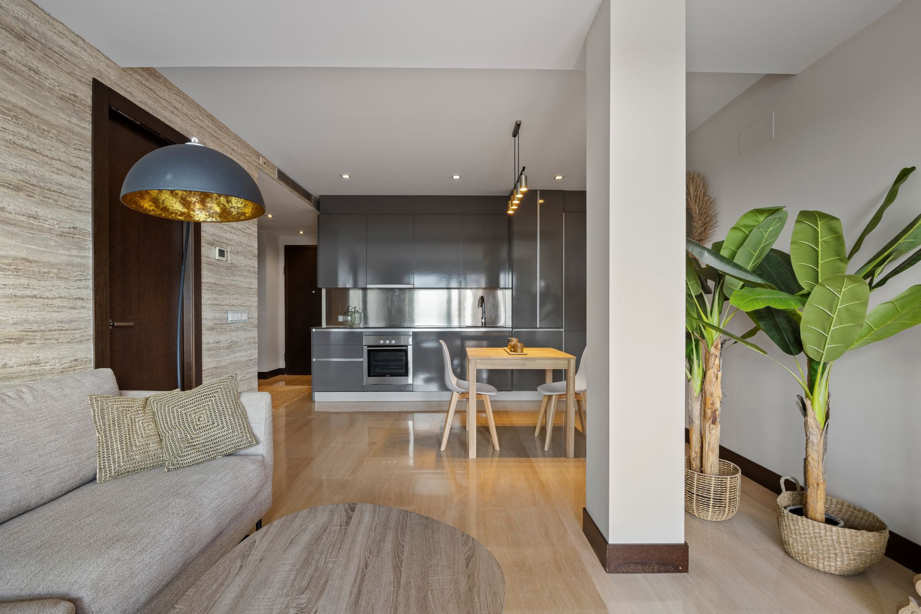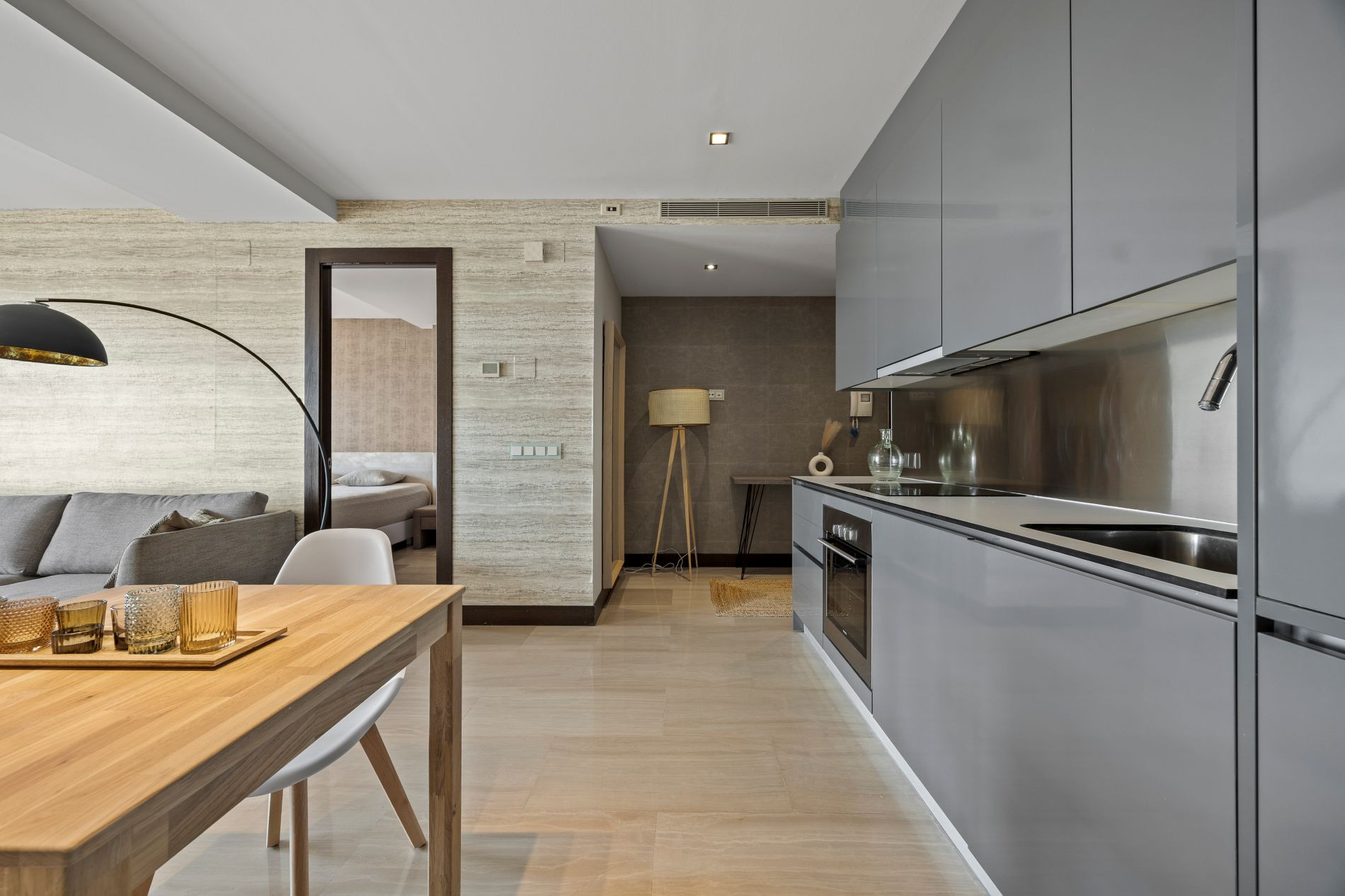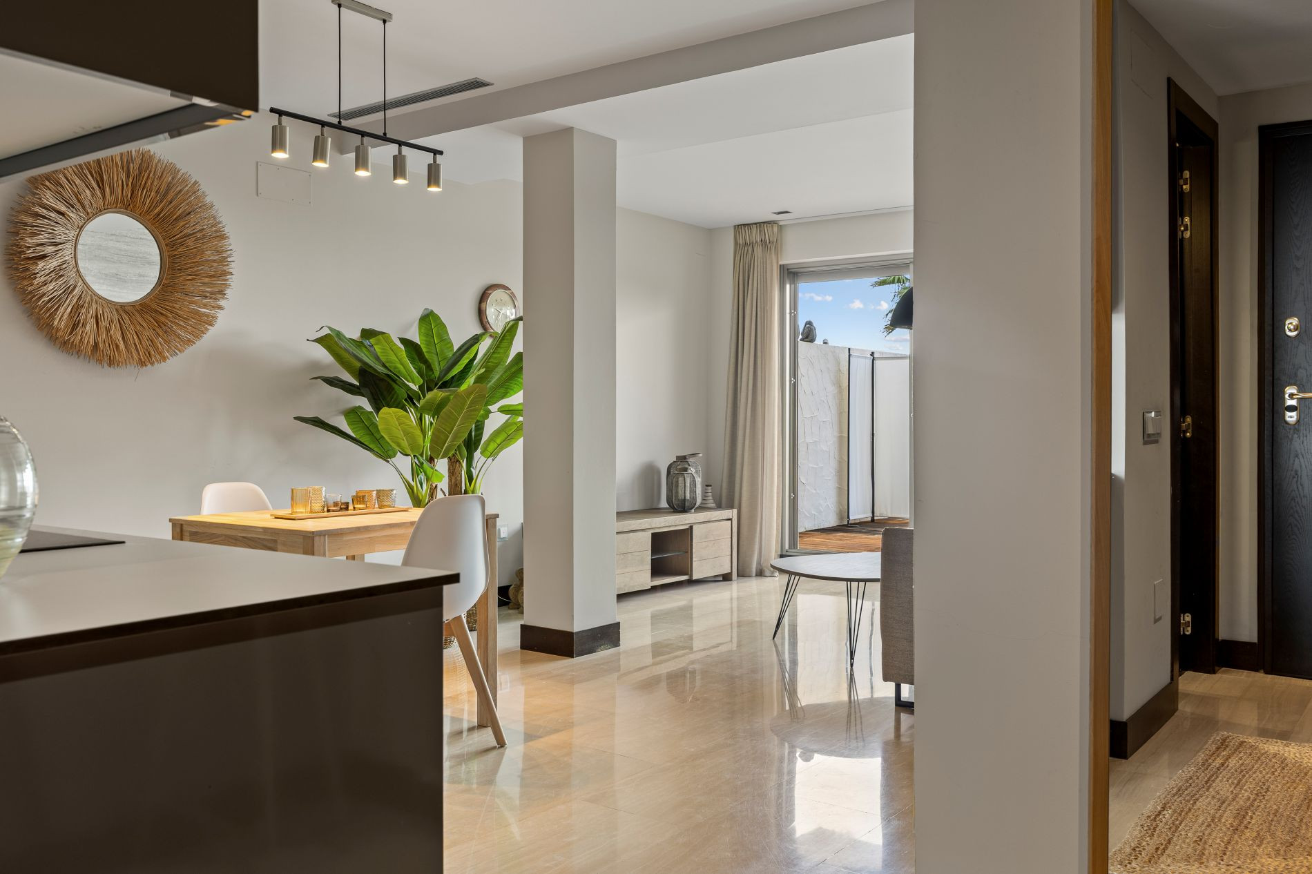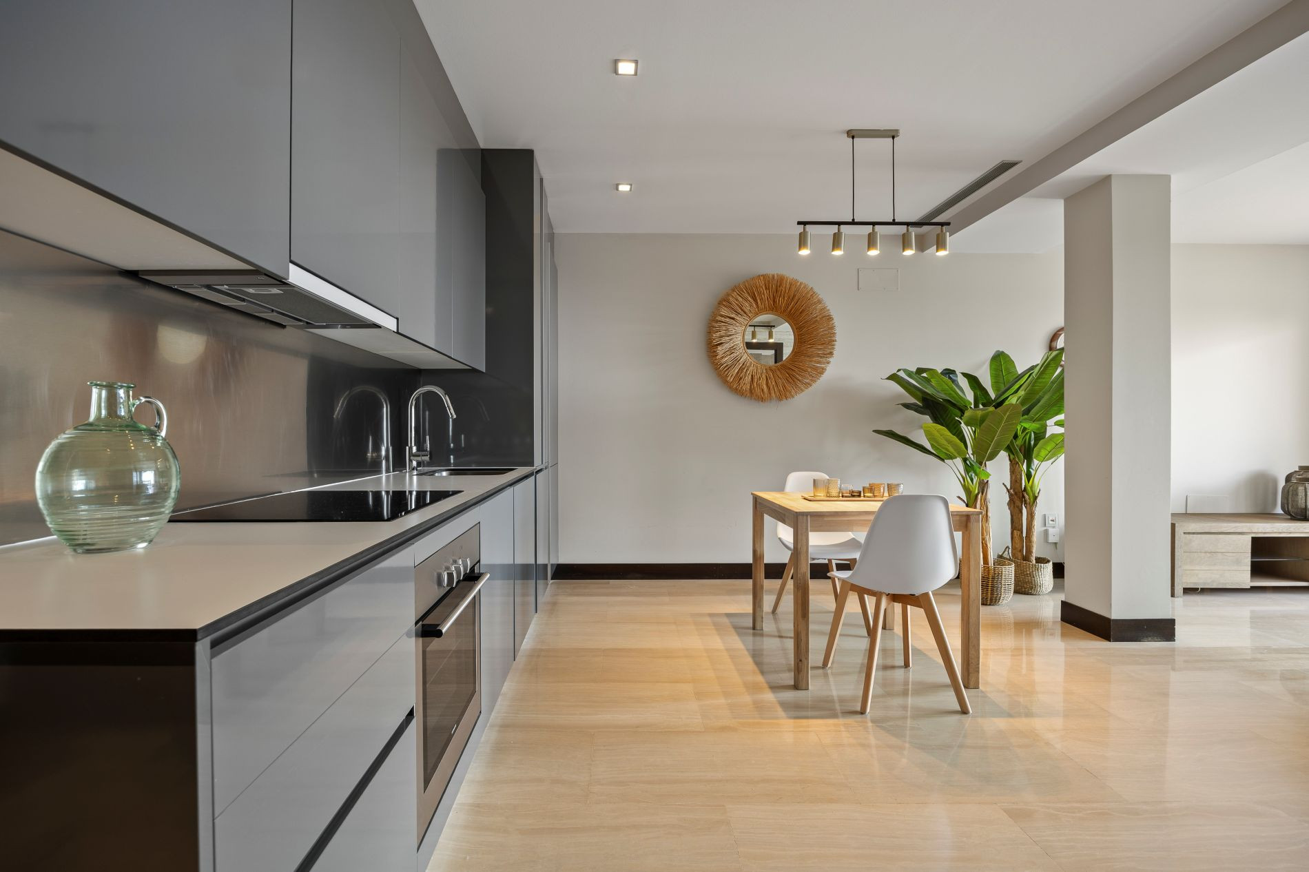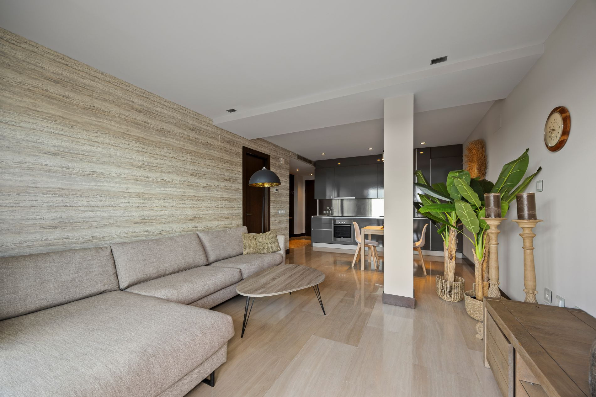 Living-Dining Room with Open Kitchen, bright and with views, fully equipped and creating a cozy atmosphere to enjoy your moments of relaxation.