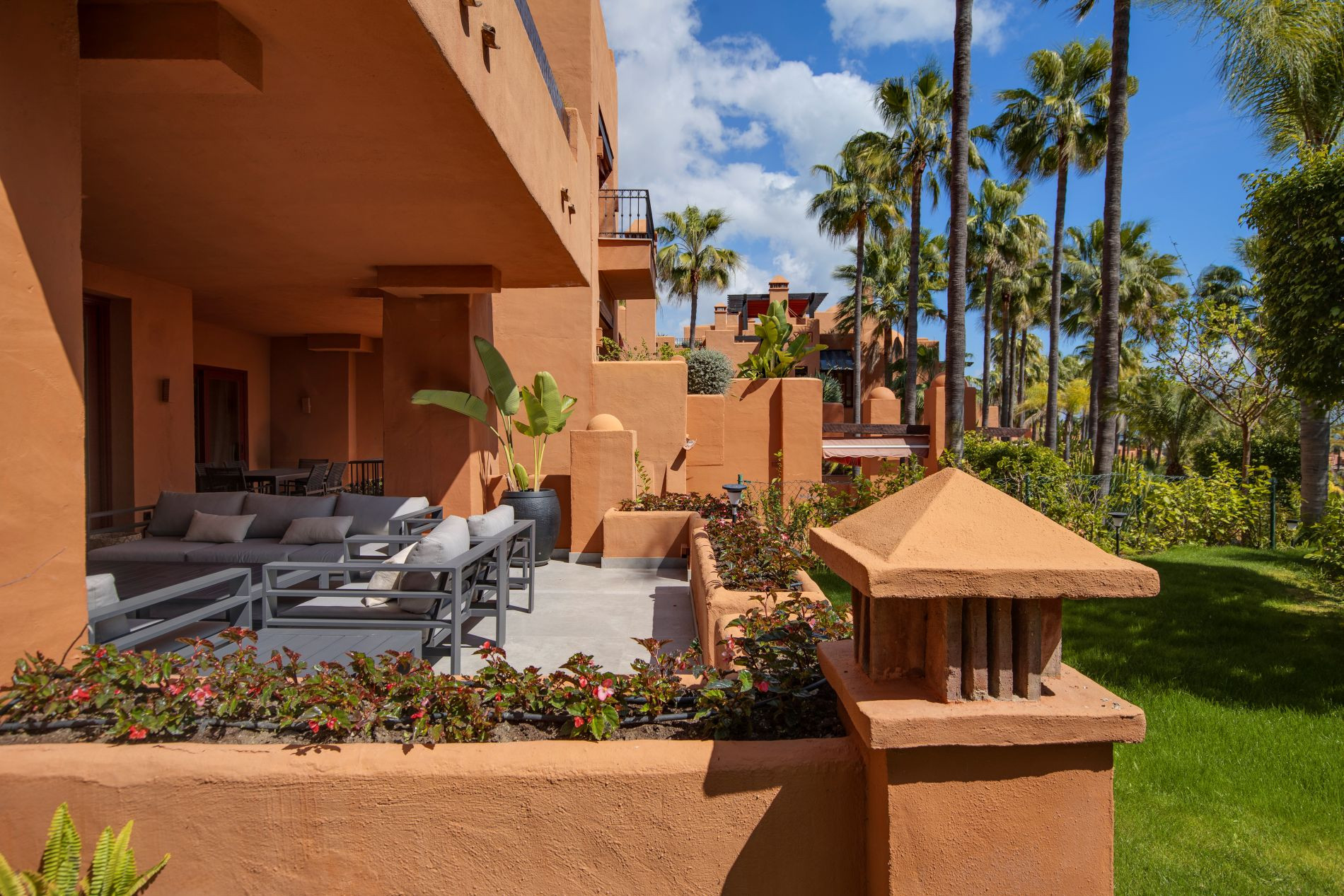 Ein Erdgeschoss-Residenz in einer der exklusivsten Wohngemeinschaften im Puerto Banús Bereich, mit rund um die Uhr Sicherheit, üppigen tropischen Gärten und einem Pool, der einem Fünf-Sterne-Resort würdig ist.