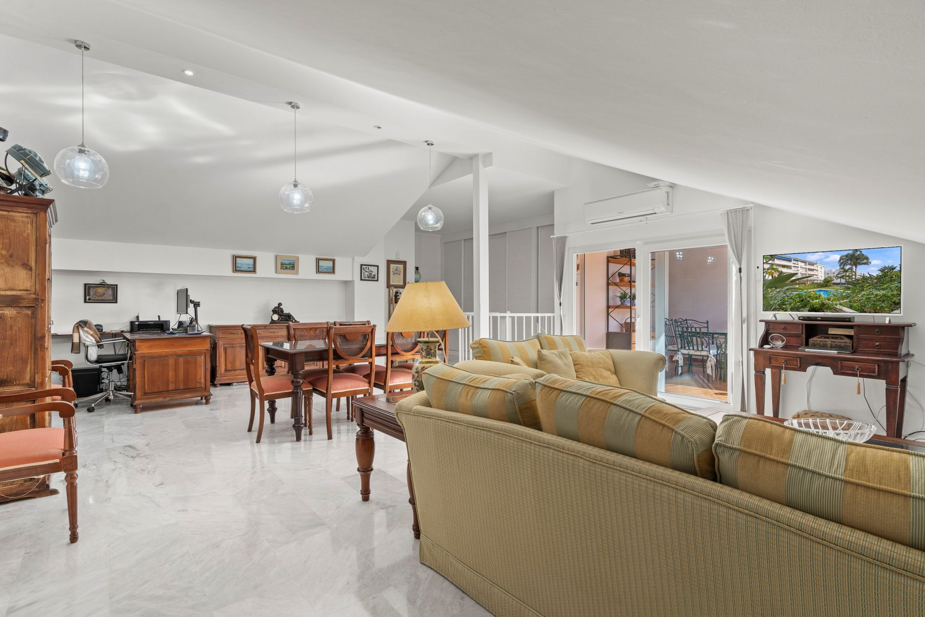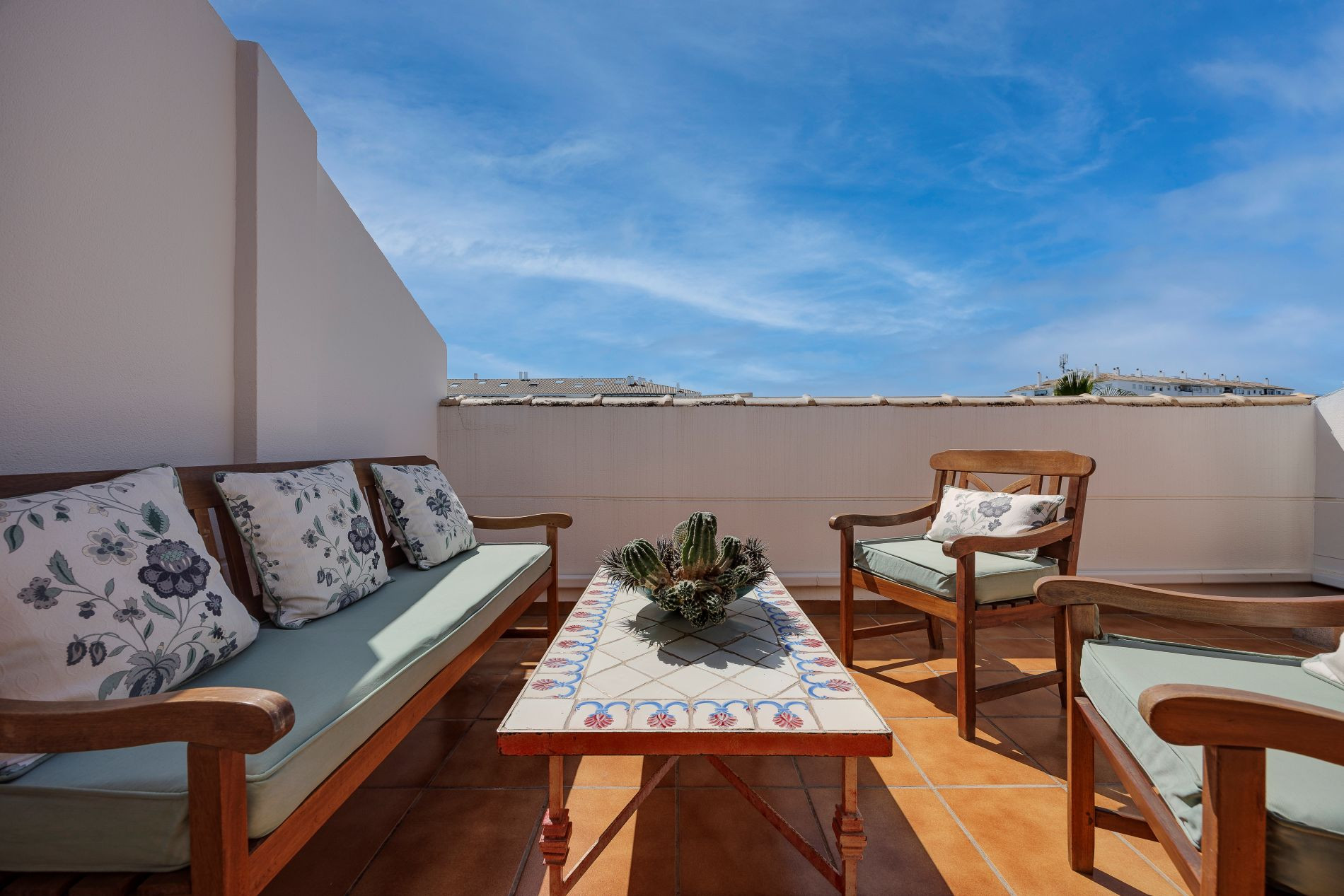 Im Erdgeschoss befinden sich die sozialen Bereiche, die sowohl für den Alltag als auch für Momente der Entspannung bestimmt sind. Das obere Stockwerk, mit seiner großen Terrasse, bietet Privatsphäre und Komfort, so dass es ideal für Familientreffen oder unterhaltsame Freunde.