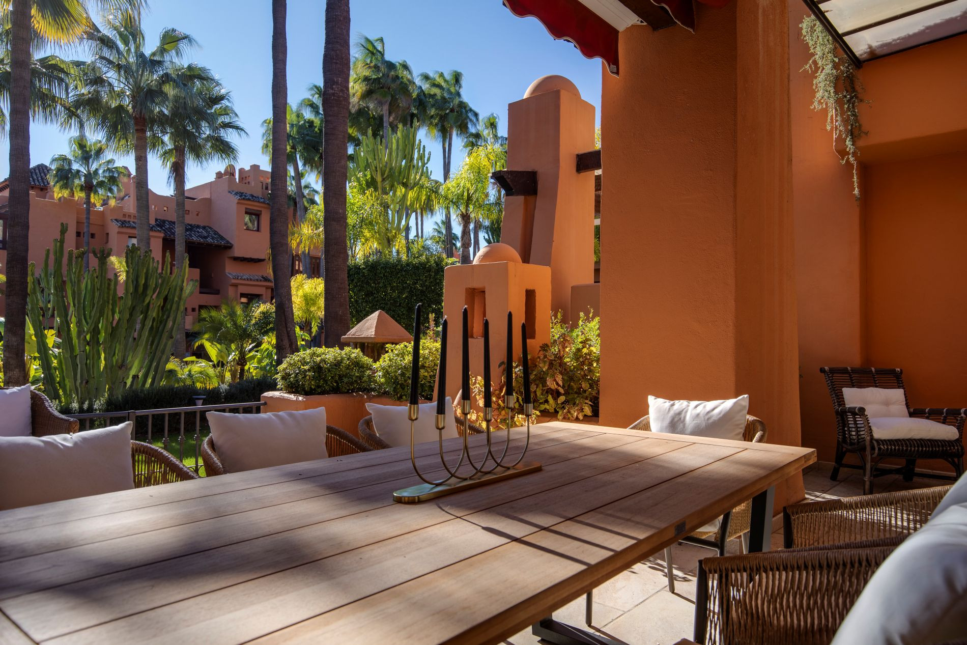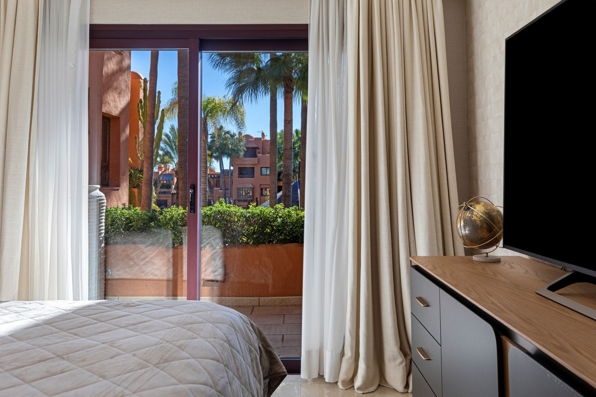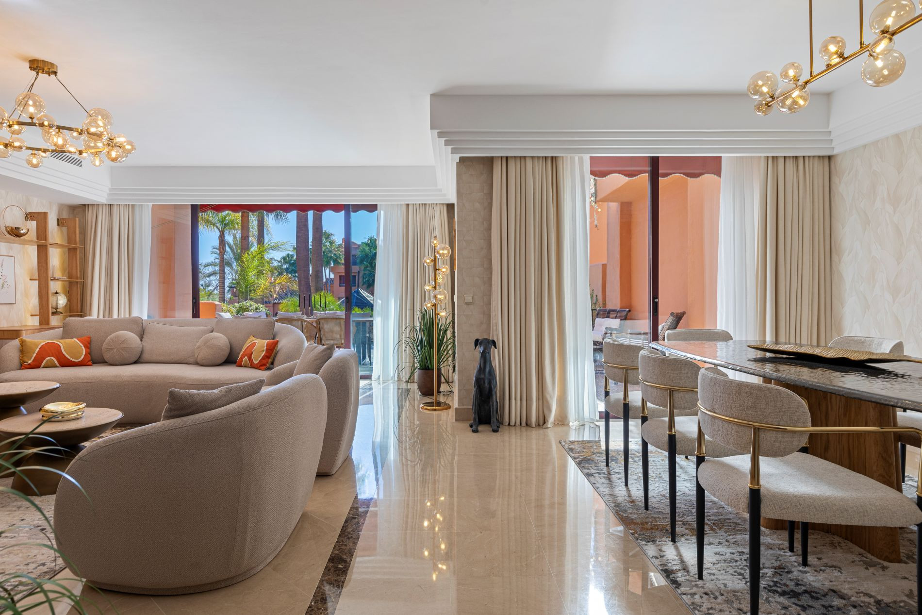 Ubicado a solo unos pasos de la playa, restaurantes y boutiques de lujo en Puerto Banús, esta exclusiva urbanización brinda seguridad, privacidad y un entorno de total relajación. El apartamento orientado hacia el sur dispone de un espacioso salón comedor, una cocina completamente equipada, tres dormitorios, dos baños, un aseo para invitados, una amplia terraza y un jardín de uso privativo.